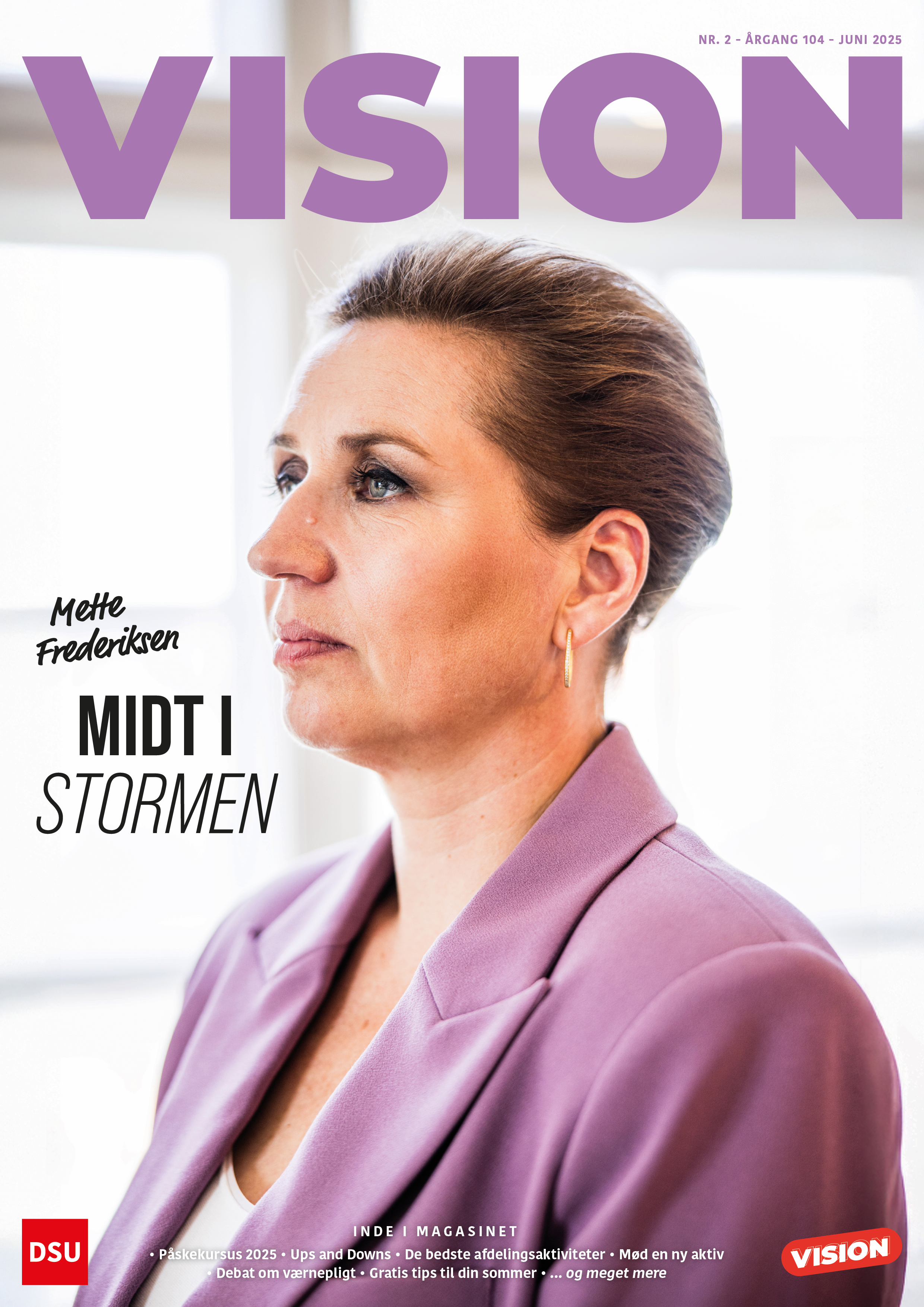 Vi sidder og tripper lidt i forkontoret til statsministeriet. Lige siden vi fik aftalen i kalenderen, har vi delvist glædet os og delvist tænkt, at den ville blive aflyst og afløst af en international krise, der skulle håndteres. Men nu sidder vi her, og det lader til, at VISION får lov at få en plads i, hvad der må være en af landets mest pressede kalendere – nemlig hos statsminister og socialdemokrat Mette Frederiksen.